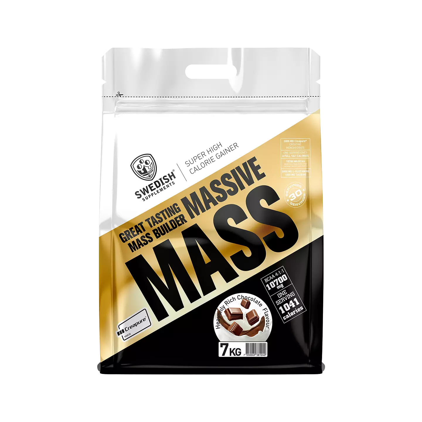 En servering ger hela 1040 kcal, vilket gör Massive Mass till ett idealiskt val för dig som har svårt att gå upp i vikt eller har ett högt energi- och återhämtningsbehov. Produkten innehåller även 3 g kreatinmonohydrat (Creapure®), 5 g L-glutamin, 1 g taurin, samt 10,7 g BCAA per portion.